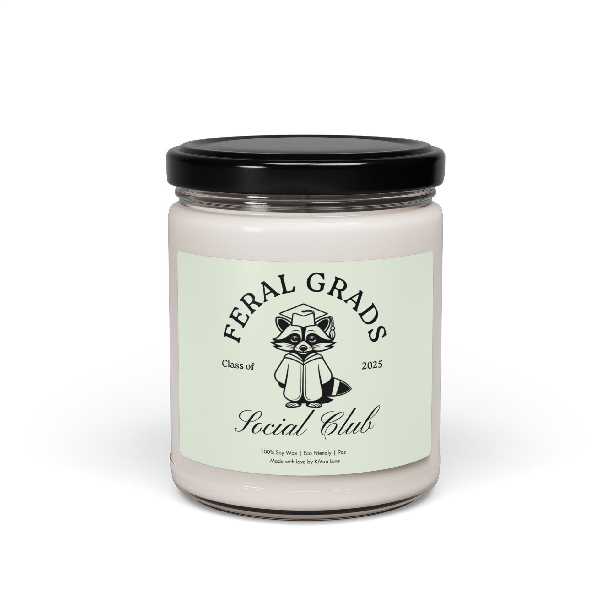 Introducing the ultimate graduation keepsake for the wild ones — our Funny Personalized Graduation Candle featuring the Feral Grads Social Club design, starring a cap-and-gown raccoon who's definitely seen some things. Whether they earned a Nursing, PhD, Master’s, Med, or Law degree, this candle celebrates their beautiful chaos in style. Personalise this candle with the Class of 'Year' of the recipient. Personalize it with their name and Class of 2025 to create a one-of-a-kind gift for that college grad, med student, or doctorate warrior who clawed their way to the finish line. It’s equal parts hilarious and heartwarming — perfect for friends who like their candles with a side of memes and their milestones with a little mayhem.