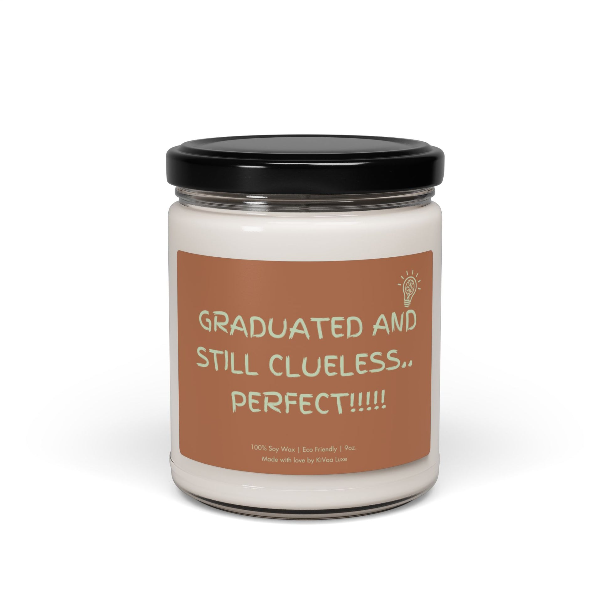 Celebrate the chaos and the cap with this hilariously honest Graduation Candle — featuring the funny phrase “Graduated but Clueless, Perfect” on the label. Whether they're stepping out of college, high school, or walking across the stage with a Nursing, PhD, Master’s, Med, Law, or Doctorate degree, this keepsake candle makes the perfect gift for a friend, him, or her who’s officially graduated… but still figuring it out. This scented soy candle is personalized to bring a smile, spark laughter, and remind them that no one really has it all figured out — and that’s okay. Great for a college grad gift, graduation present, or congratulations keepsake that stands out from the crowd.