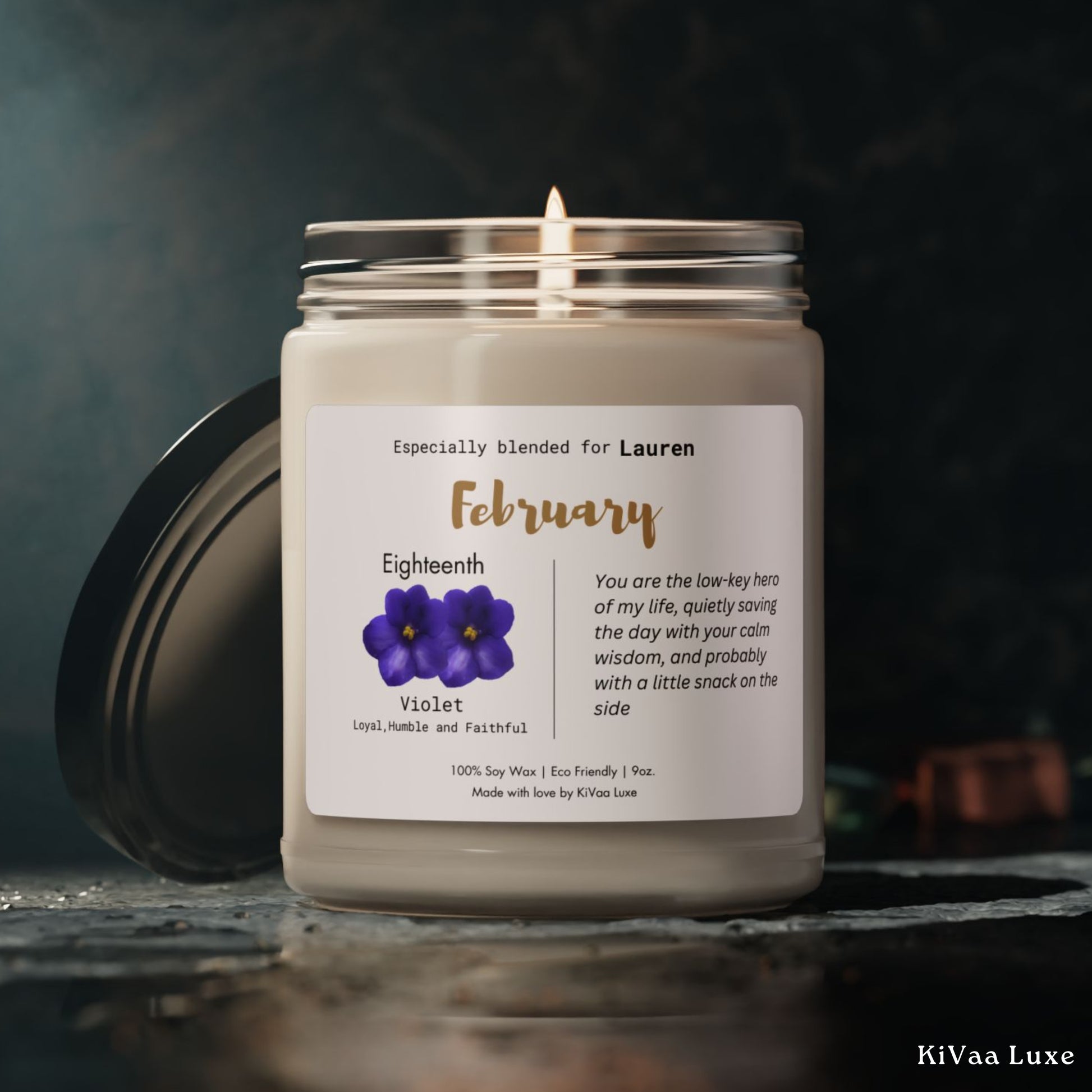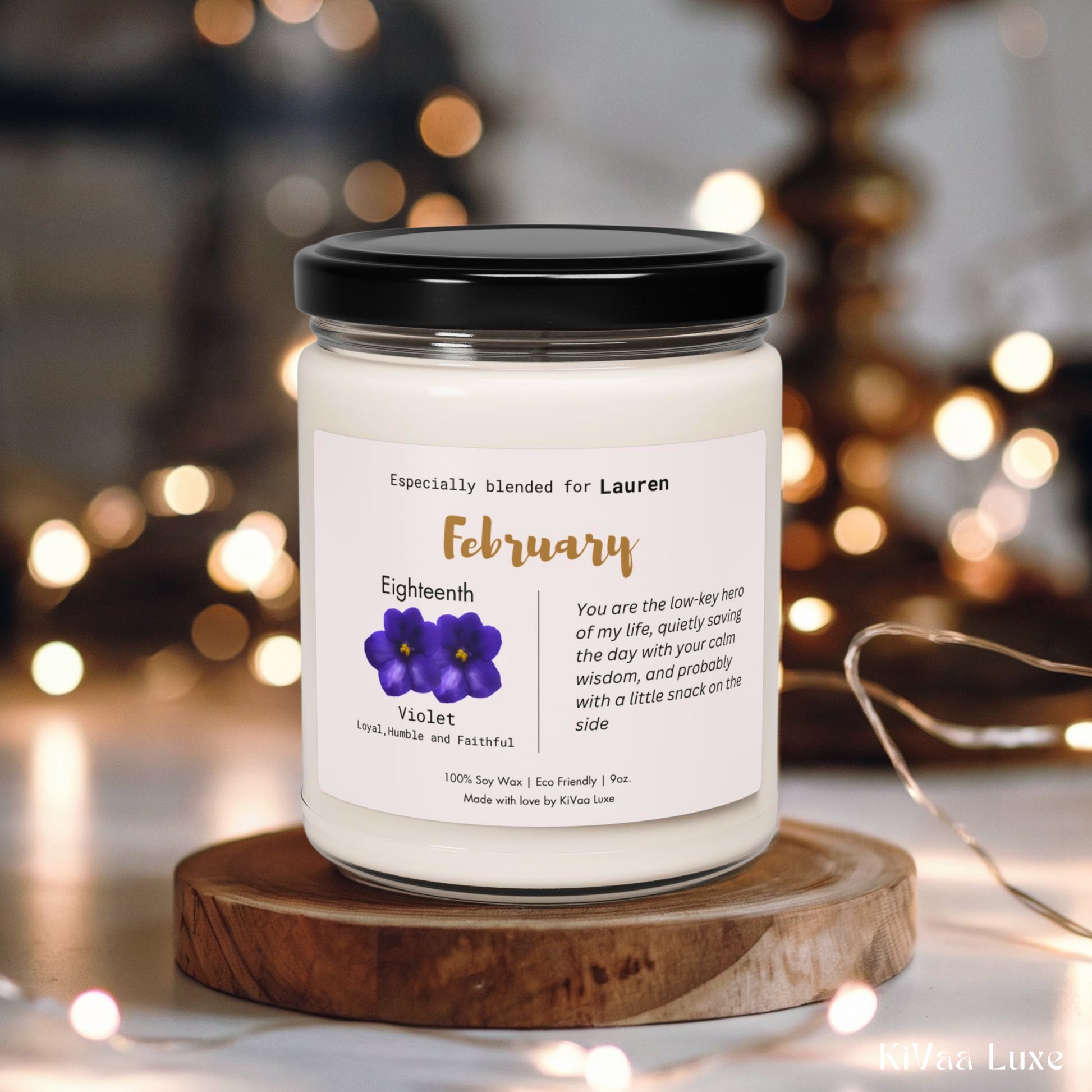 Celebrate a February birthday with this Personalized Birth Flower Candle, a perfect Birth Month Gift for someone special! This Scented Soy Candle is customized with the recipient’s name, birthdate, and their birth flower, along with a message that reflects the kind and imaginative nature of February-born individuals. This Birthday Candle is a thoughtful and unique gift for any milestone—18th, 21st, 25th, 30th, 35th, 40th, 45th, 50th—or simply to celebrate a loved one. Whether you’re searching for a February candle, February bday gift, birthflower gift, or personalized candle, this makes a perfect keepsake for gifts for her & him!