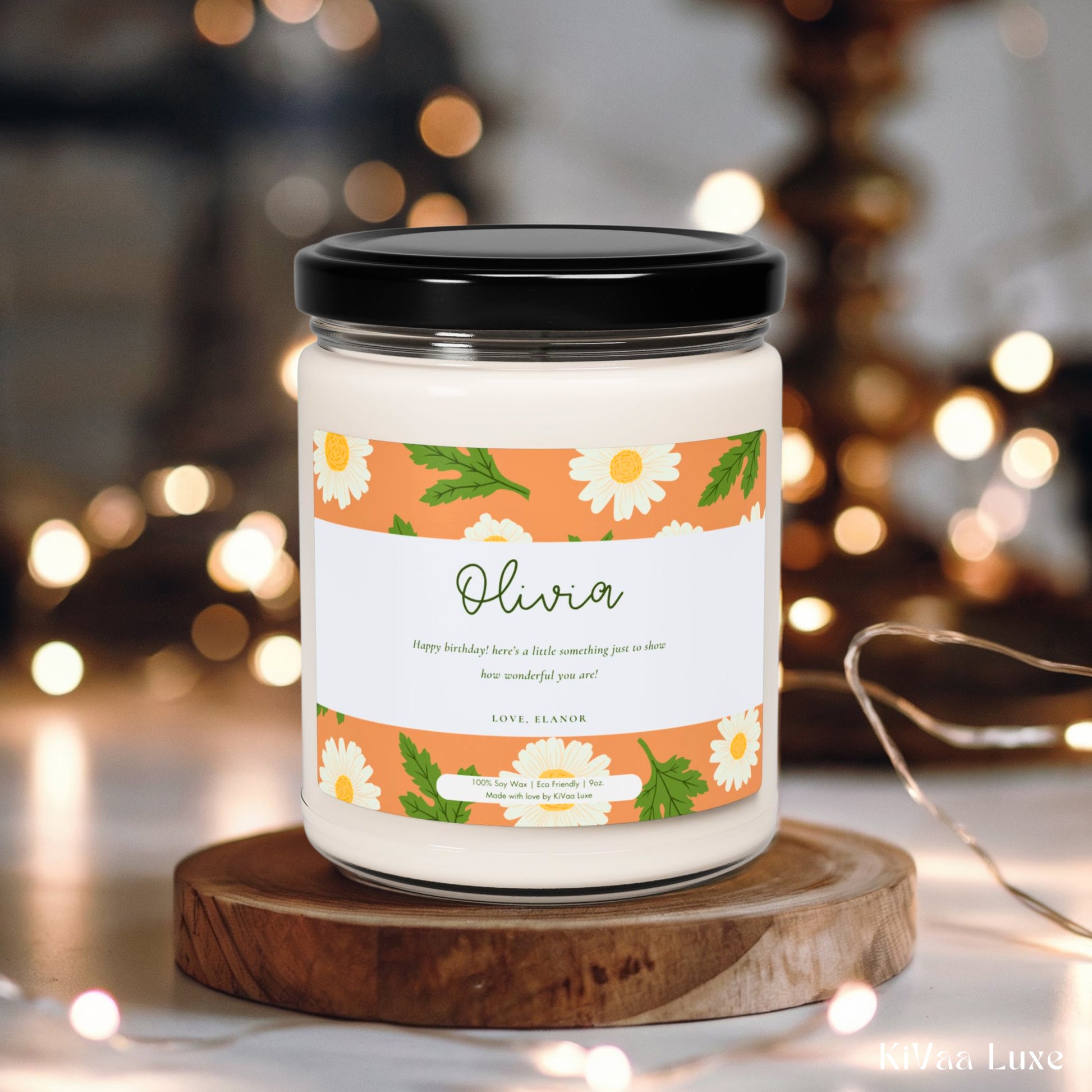 Celebrate their special day with our Personalized Birthday Gift Candle for Her featuring a custom name and heartfelt message. This cute birthday gift has modern vibes with a floral design on the label, making it the perfect personalized candle for a best friend, BFF, sister, mother, teacher, wife, or brother. Whether you're shopping for a 21st, 25th, 30th, 40th, 50th, 60th birthday or any milestone, this floral b'day candle adds a thoughtful, cozy touch to your birthday gift ideas. Ideal for bff birthday gifts, gifts for her, gifts for him, or anyone who deserves a little magic on their big day!