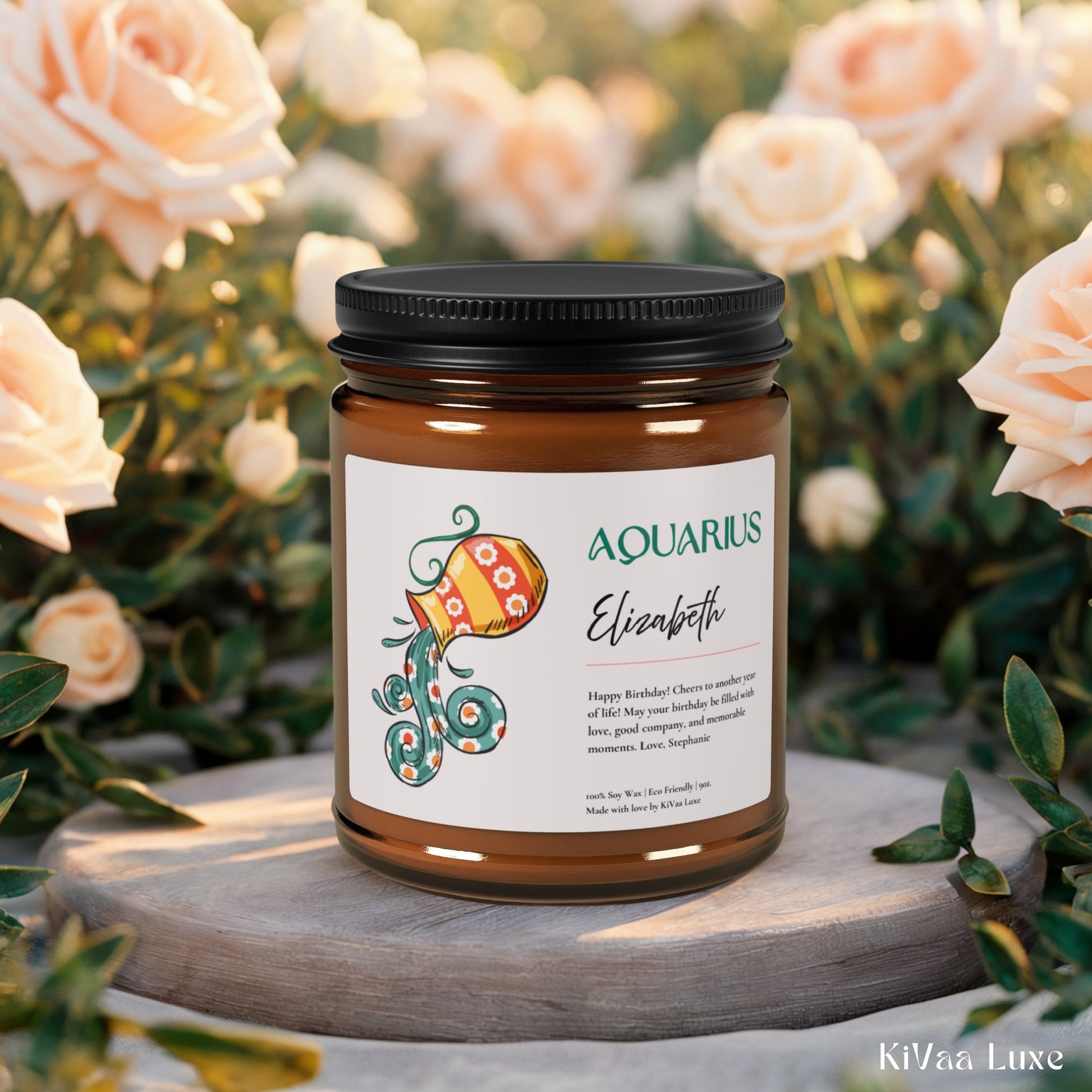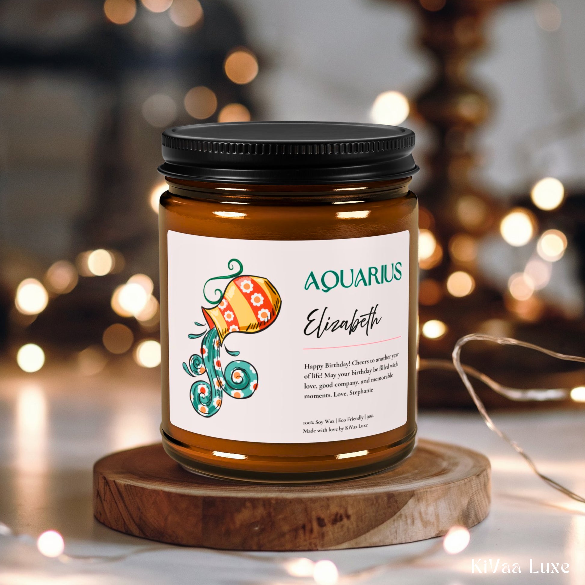 Personalized Zodiac Colorful Birthday Gift For Her Candle - Aquarius